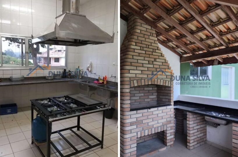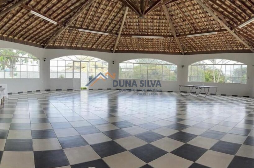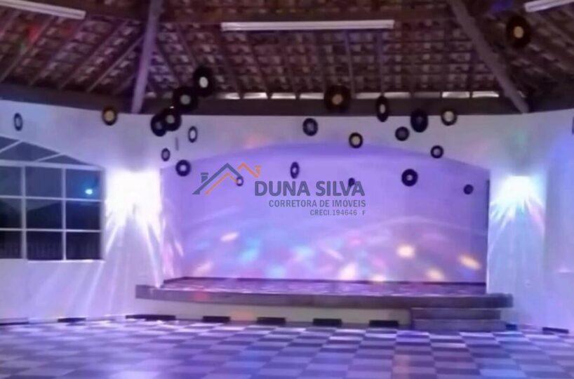 SALÃO DE FESTA PARA APROXIMADAMENTE 260 PESSOAS, VÃO TOTALMENTE LIVRE, COM PALCO E CAMARIM, SALA SECUNDÁRIA, BANHEIROS MASCULINO E FEMININO, COZINHA INDUSTRIAL TOTALMENTE EQUIPADA E INTEGRADA COM ÁREA DE CHURRASQUEIRA.