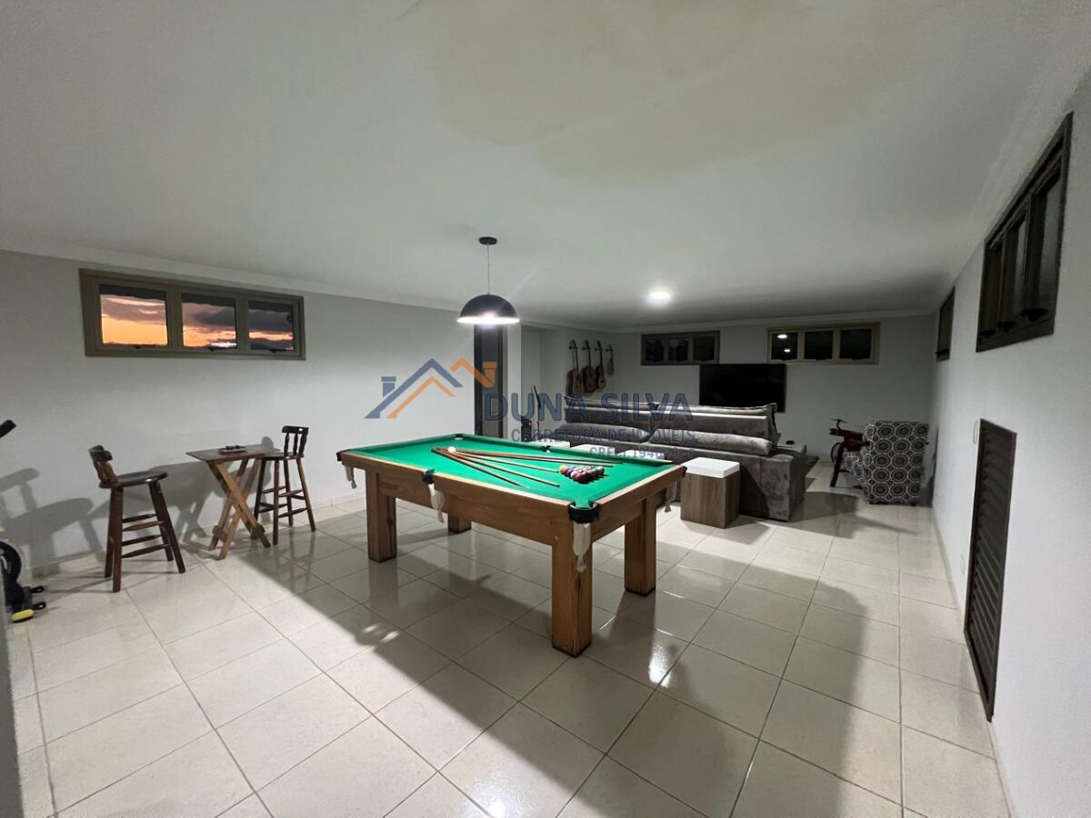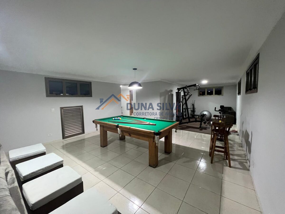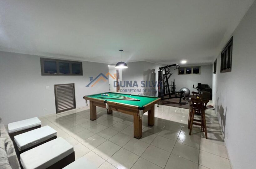 PAVIMENTO SUPERIOR 2 – SALA DE TV, INTEGRADA COM ACADEMIA E SALA DE JOGOS COM MESA DE SINUCA, BANHEIRO SOCIAL, ESCRITÓRIO E ATELIÊ PLANEJADO.