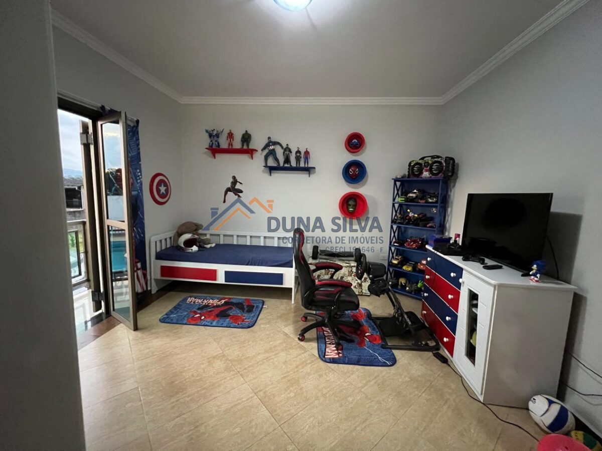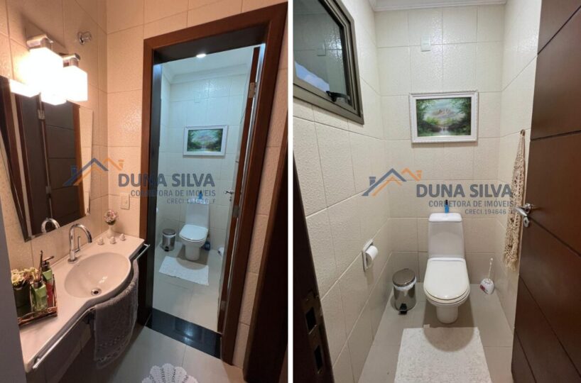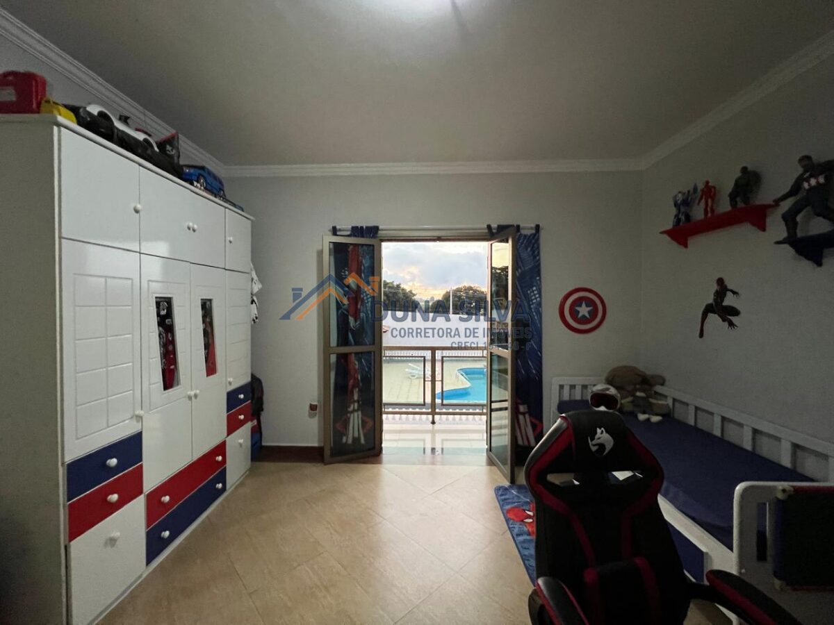 PAVIMENTO SUPERIOR 1 – 04 DORMITÓRIOS, SENDO 01 SUÍTE COM CLOSET, TODOS COM VARANDA E AMPLA VISIBILIDADE, BANHEIRO SOCIAL, SALA COM LAREIRA, SALA DE JANTAR, COZINHA PLANEJADA, LAVABO, ÁREA DE SERVIÇO COM PLANEJADO E VARANDAS COM TOTAL INTEGRAÇÃO A ÁREA VERDE.