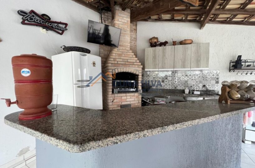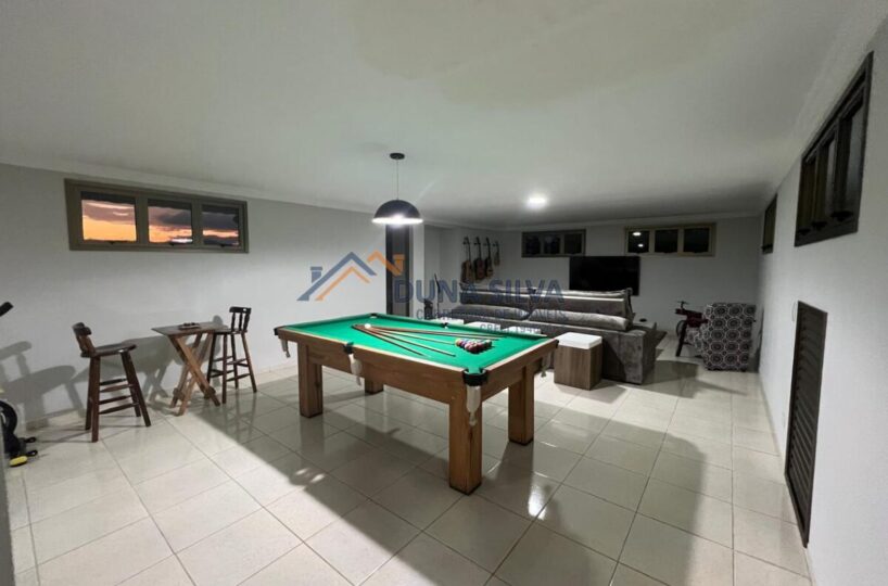 PAVIMENTO TÉRREO – GARAGEM COBERTA PARA ATÉ 08 CARROS COM CÔMODO PARA FERRAMENTA E/OU MATERIAIS ETC., TOTAL INTEGRAÇÃO COM ÁREA DE LAZER – ÁREA GOURMET COMPLETA COM CHURRASQUEIRA, BANHEIRO MASCULINO E FEMININO, BANHO E PISCINA, FOGÃO A LENHA.