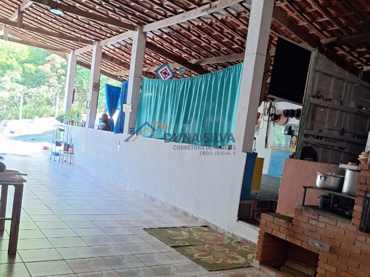 CASA  COM 02 DORMITÓRIOS, SALA, SALA DE JANTAR, BANHEIRO SOCIAL,  COZINHA, ÁREA DE SERVIÇO,  VARANDA COM FRENTE PARA PISCINA , ÁREA DE CHURRASQUEIRA COM BANHEIRO, SALÃO COBERTO, 01 CÔMODO EXTERNO,  ÁREA DE PISCINA, POMAR COM DIVERSOS PÉS DE ARVORES FRUTÍFERAS, HORTA, CAPELA.